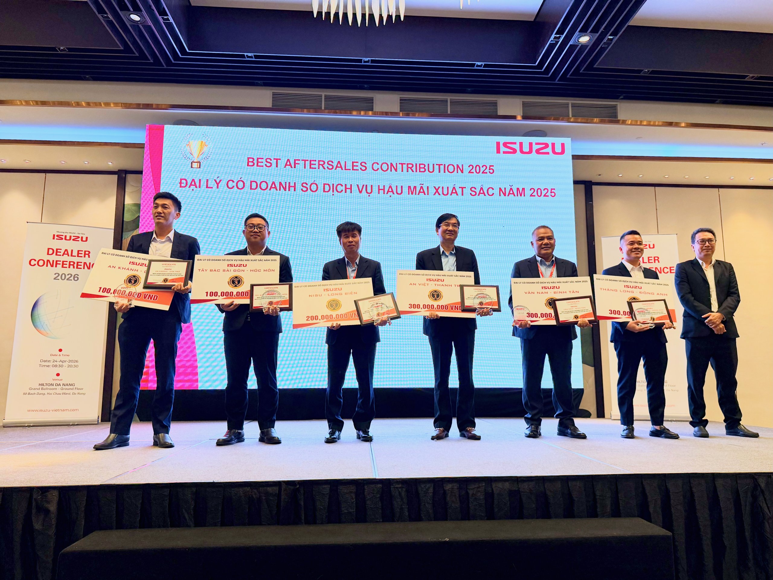 – Giải thưởng Đại lý có Doanh số Dịch vụ hậu mãi xuất sắc năm: ISUZU An Khánh – Cần Thơ, ISUZU Tây Bắc Sài Gòn – Hóc Môn, ISUZU Nisu – Long Biên, ISUZU An Việt – Thanh Trì, ISUZU Vân Nam – Bình Tân, ISUZU Thăng Long – Đông Anh (ảnh từ trái sang phải).